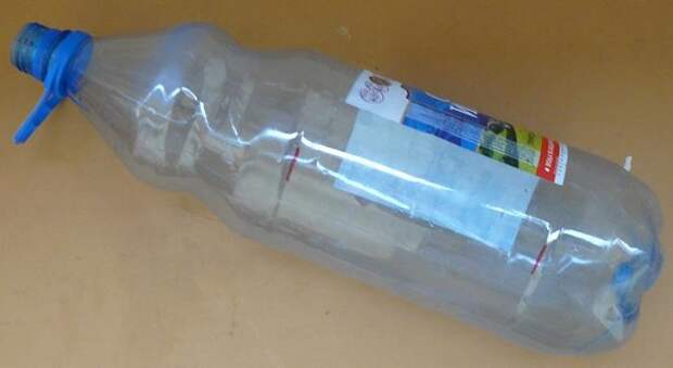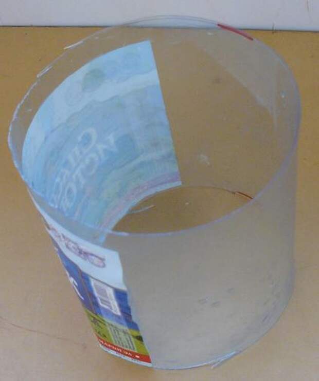 Начинаем, берем пластиковую бутылку, смотрим где у нее самое ровное место и с помощью ножа и ножниц вырезаем по кругу