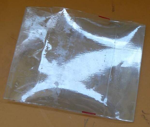 Далее мы ее моем, снимаем при этом этикетку, насухо вытираем и начинаем сплющивать ее в пластину с помощью рукоятки ножа или ножниц с одной стороны