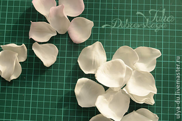 Нарезаем 10 маленьких лепестков и 18 больших. Этого количества мне хватает, чтобы сделать раскрытый, пышный цветок. Но в первый раз вам может потребоваться больше лепестков. Потом вы научитесь формировать рыхлый цветок.