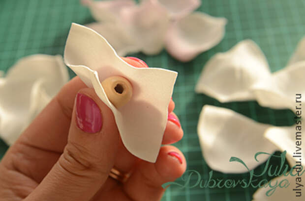 После этого переворачиваем и подклеиваем как можно ниже, в идеале в самого основания лепесточка.