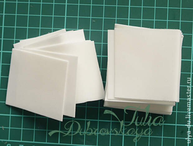Нарезаем фоамиран на прямоугольники 4х4,5 и 5х5,5. Для этого проще сначала отрезать от листа полоски 4 и 5 сантиметров.