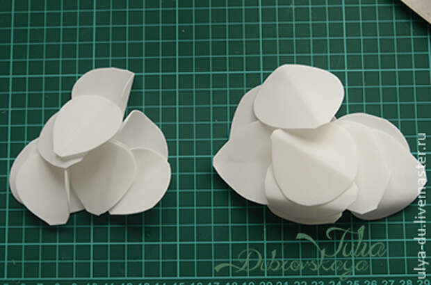 Чтобы лепесточки лучше раскрывались, можно их при подклейке прищипывать у основания.