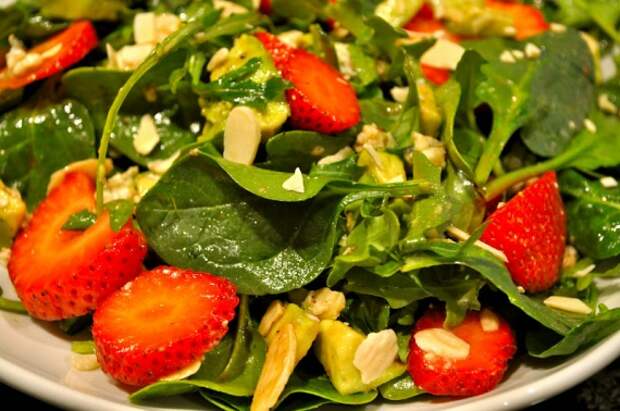 Салат из авокадо и клубники - один из тех новомодных салатов, которые стали популярны в основном из-за появления на полках наших магазинов удивительного и очень полезного фрукта - авокадо. Все что с ним ни готовишь, получается вкусно и оригинально, а уж если добавить еще спелых ягод, хрустящих орешков и сочной зелени, то вообще не оторваться.